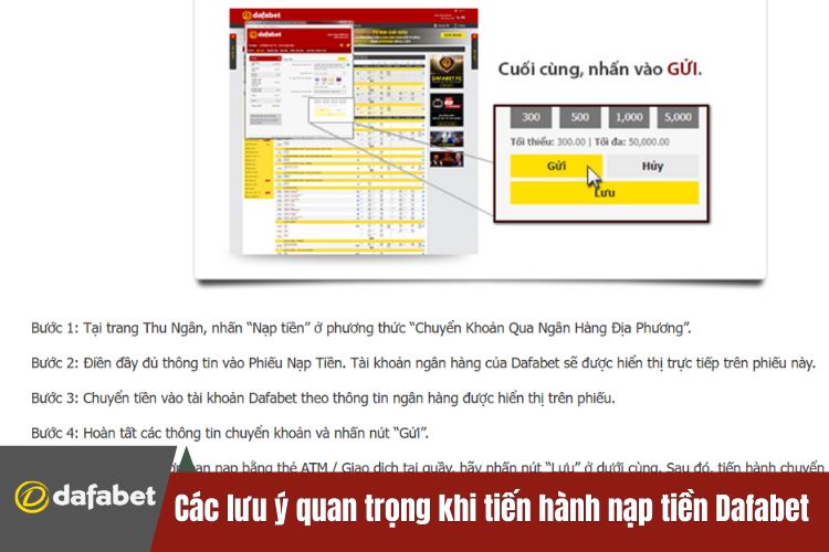 Các Lưu Ý Quan Trọng Khi Tiến Hành Nạp Tiền DAFABET